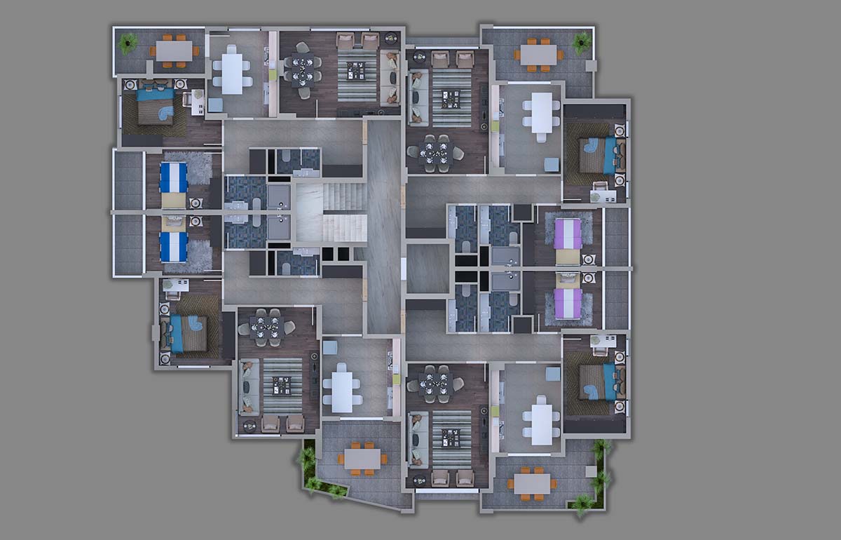 Her odada güneş ışığından maksimum faydalanma ve fonksiyonel mekan vizyonuyla tasarlanan dairelerimizde sizin ve ailenizin rahatlığı için her ayrıntı düşünüldü..