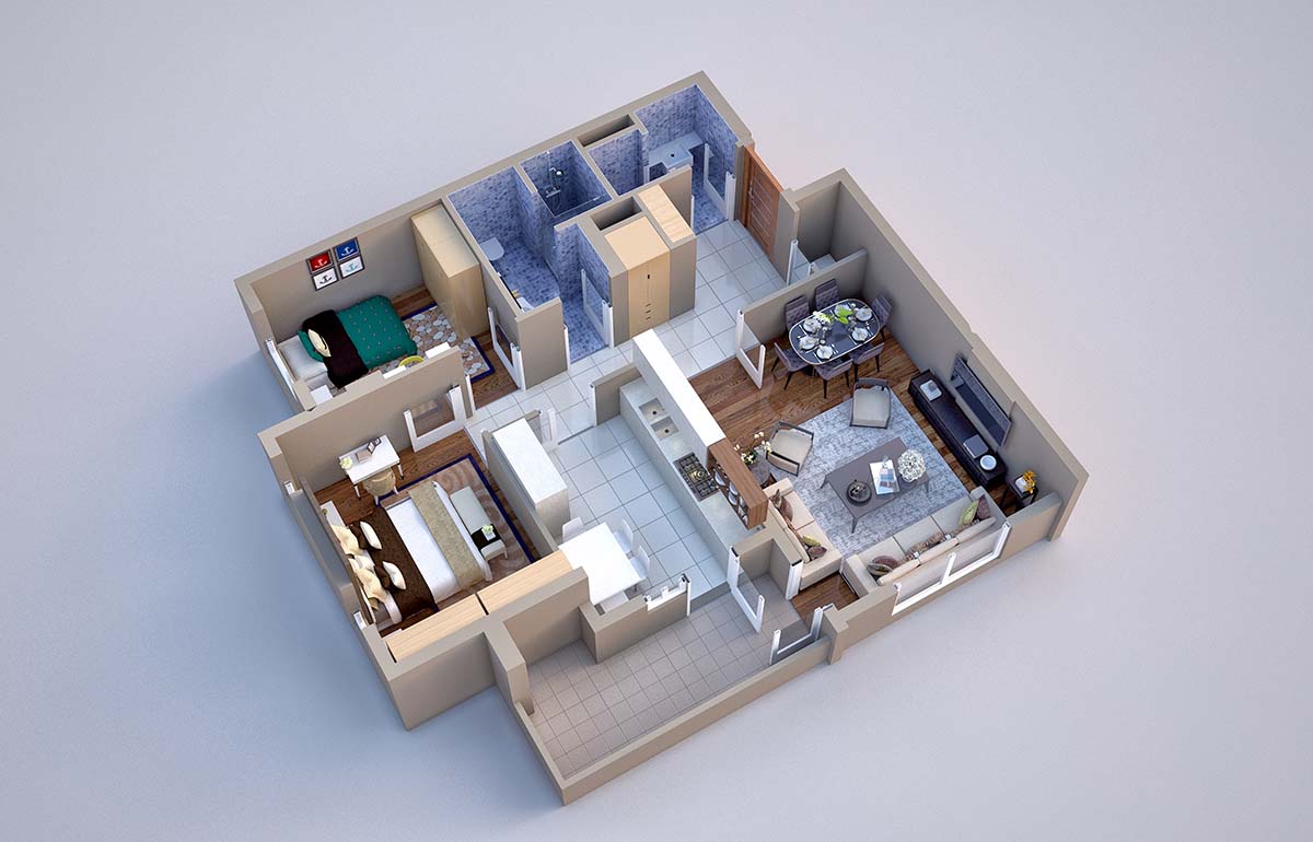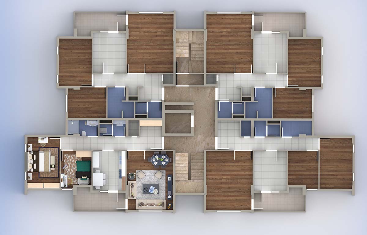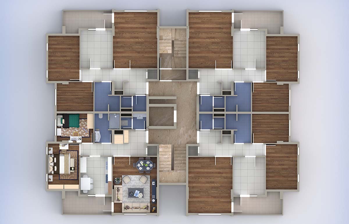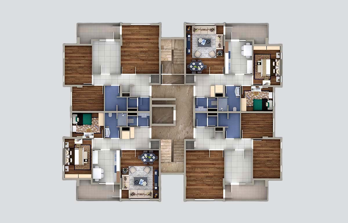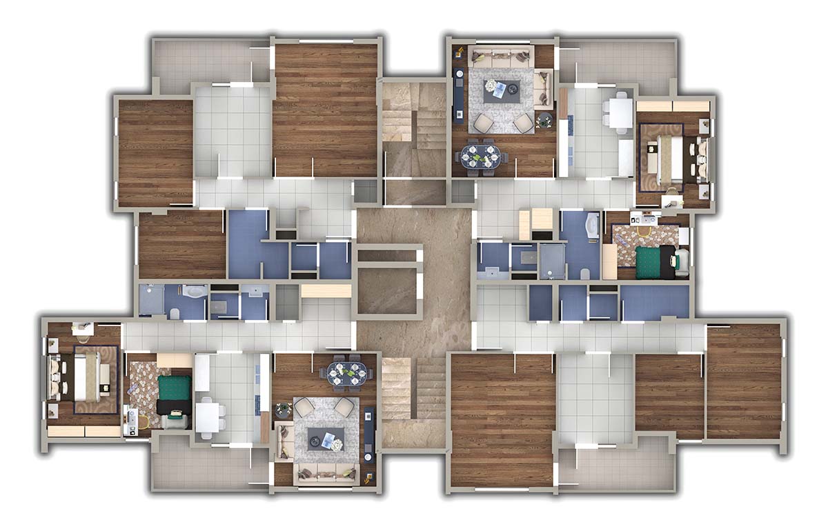 - 2 Blokta 48 konut ve 10 adet ticari dükkanlar,