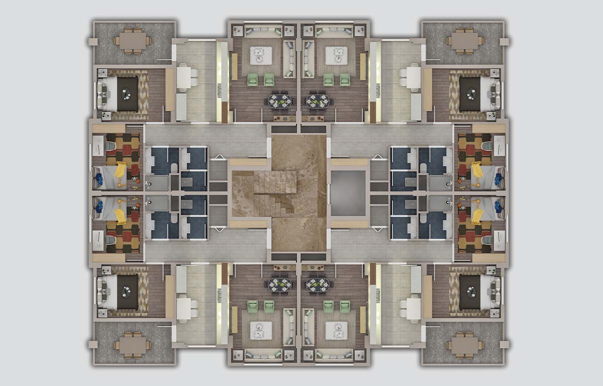 Alize Konutları'nın her detayı sizlerin rahatı düşünülerek tasarlandı. Çevre düzenlemesinden dairelerin tasarımına kadar tüm detaylar mutluluğunuza mutluluk katacak, sizlere konforlu bir hayat sunacak.